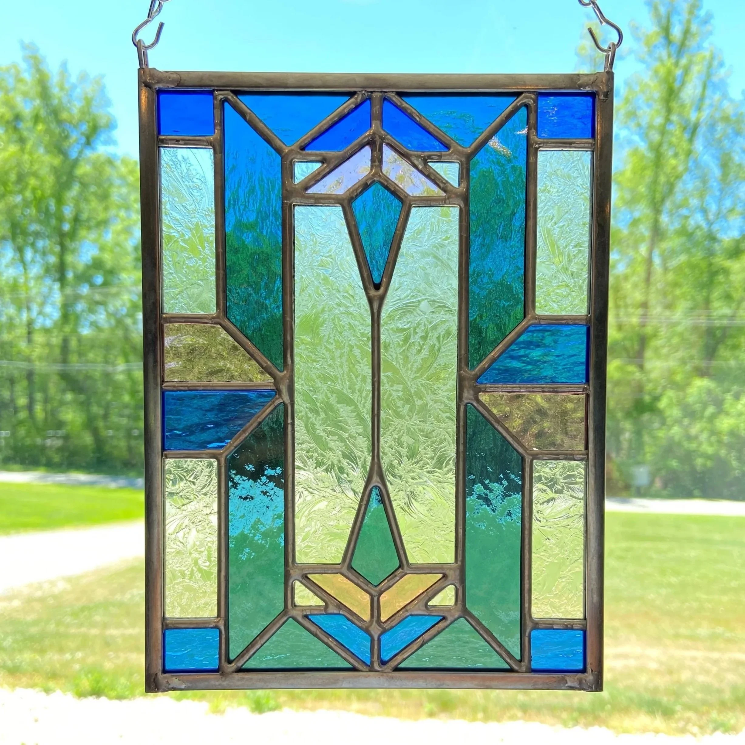 This piece explores the idea that glass selection is not secondary to design—it’s part of the design. Each segment is given its own signature in glass, balancing color and texture. Clear textured areas represents open spaces, separating and highlighting the geometry rather than filling it.